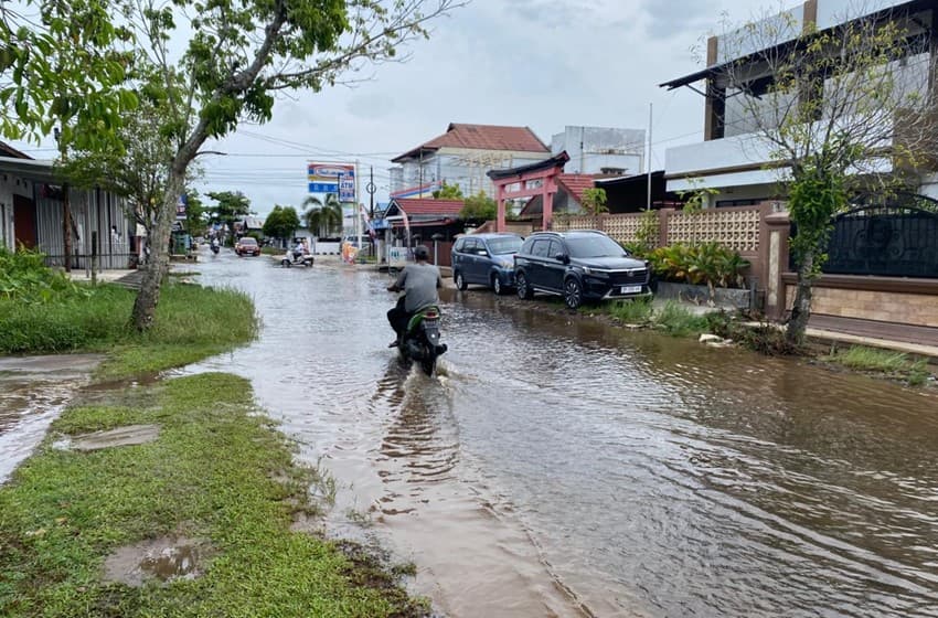 Genangan mulai muncul sekitar pukul 06.45 WIB, seiring pertumbuhan awan konvektif yang memicu hujan relatif merata di kawasan tersebut.