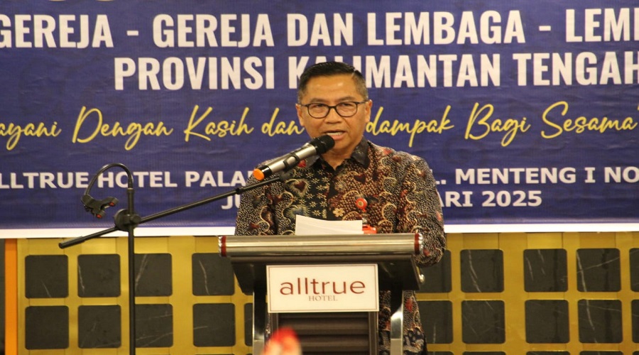 kanalkalteng.com, Palangka Raya - Ketua Pembina Kerohanian Kristen sekaligus Kepala Badan Perencanaan Pembangunan Riset dan Inovasi Daerah (Bapperida) Prov Kalteng Leonard S Ampung mewakili Gubernur buka Musyawarah Wilayah (Muswil) Persekutuan Gereja-Gereja dan Lembaga-Lembaga Injil Indonesia (PGLII) Prov Kalteng, di Aula Hotel Altrue Palangka Raya, Jumat (24/1/2025).